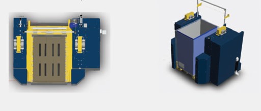 Infeedy to urządzenia podawcze, mogące unosić ładunki o masie do 1200 kg na wysokość 9-64 cm. Przód i tył maszyny są wyposażone w kurtyny jednowiązkowe, czyli przekaźniki bezpieczeństwa, pozwalające monitorować obszary niebezpieczne. Załadunek towarów odbywa się w trybie Push and Leave.