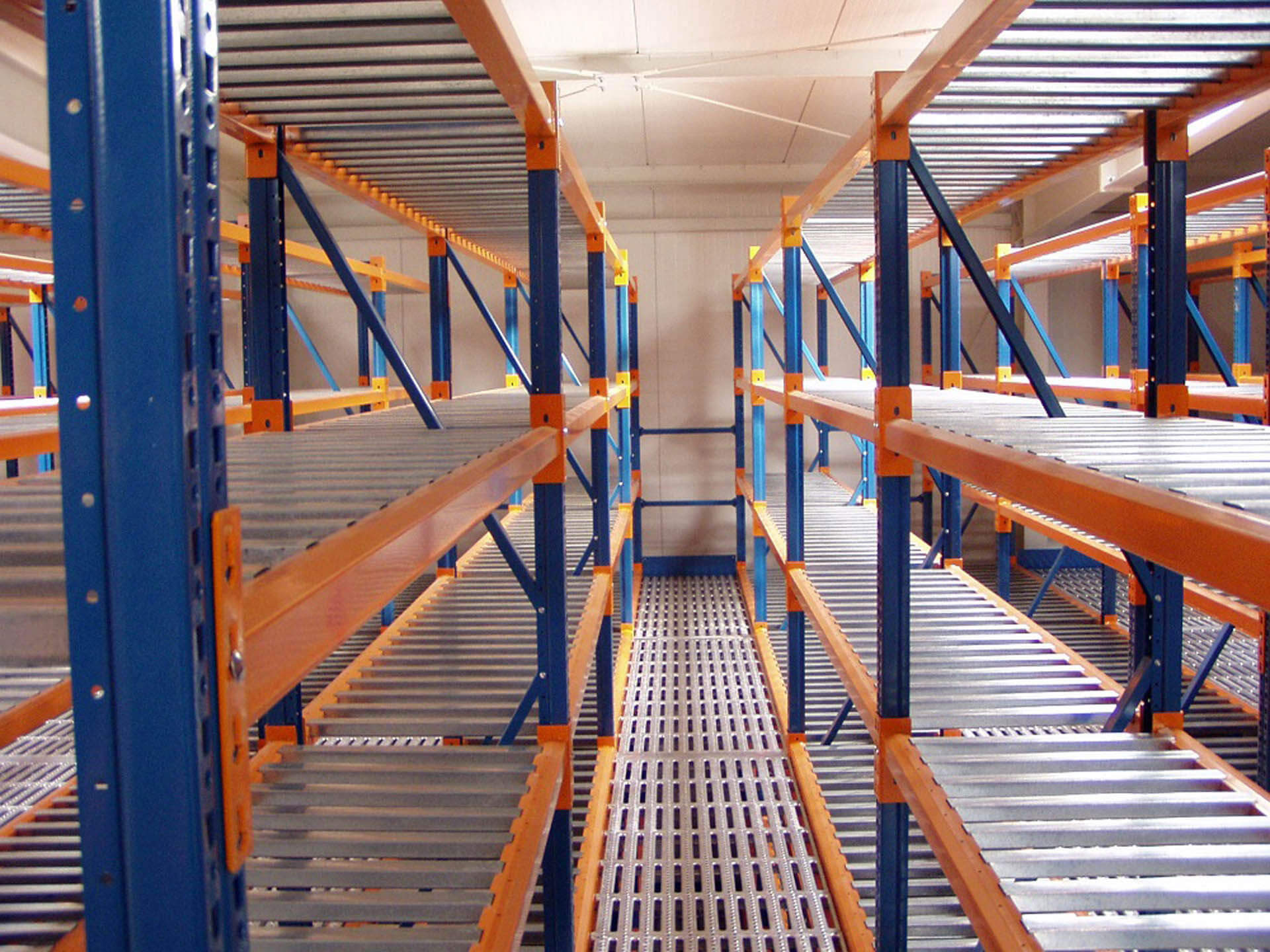 Regały półkowe można nadbudować podłogą (SF2), lub zaprojektować jako wielopoziomowe systemy z podłogami podwieszanymi (SF3).